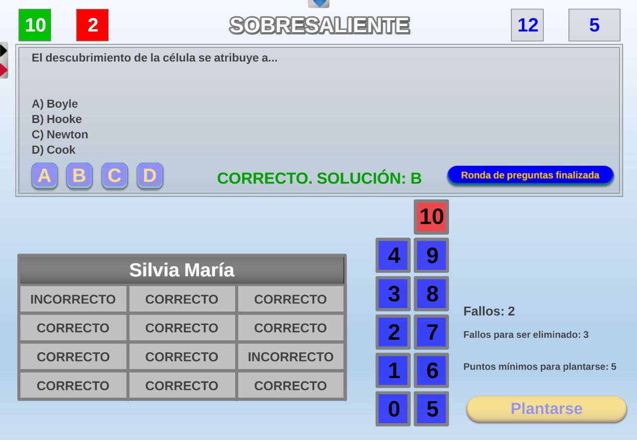 Juego en el que los participantes deben intentar alcanzar el grado de "sobresaliente" (9 o 10 puntos) cometiendo el menor número de fallos posible.