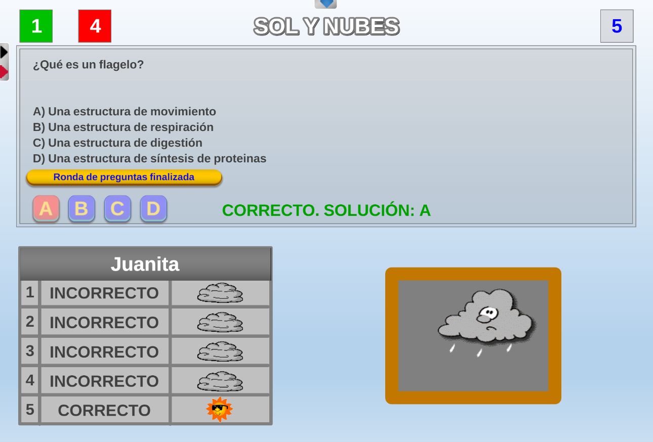 Juego diseñado especialmente para la etapa de educación primaria, en el que se asocian las respuestas a las preguntas con factores meteorológicos.
