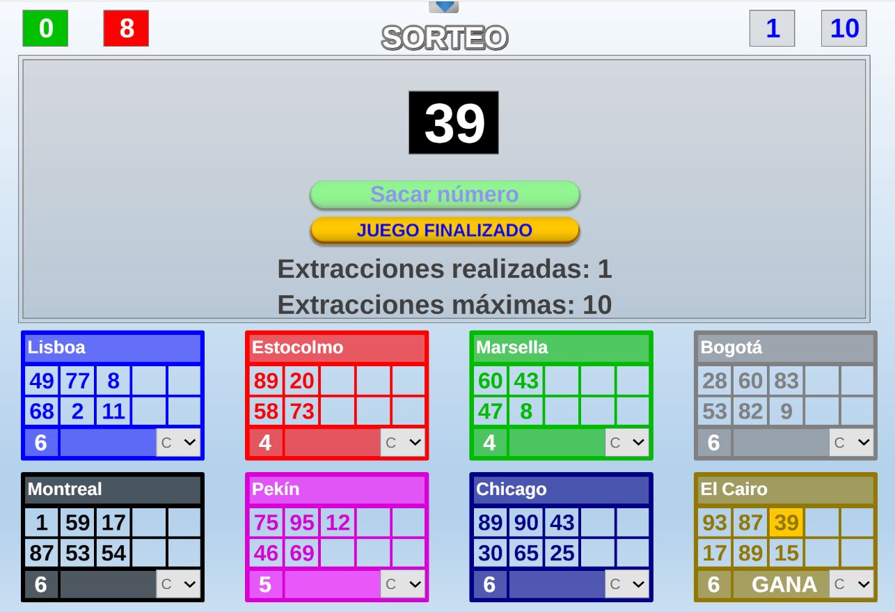 Se extraerá un número en el intervalo de 1 a 99 y ganará el jugador o los jugadores que tengan dicho número. En caso de que nadie tenga el número se extraerá otro.