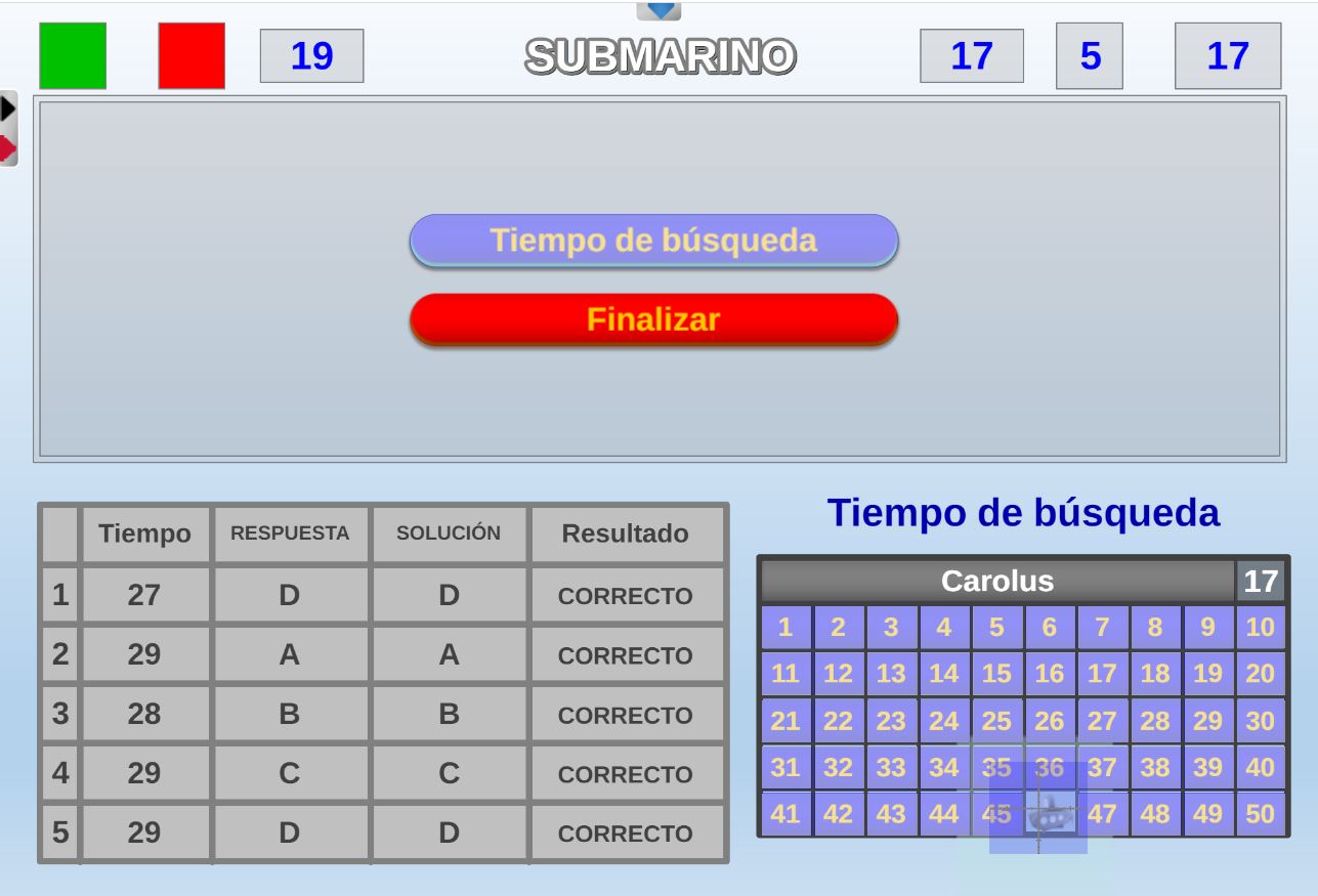 Juego que gana el participante que encuentre el submarino que se encuentra en un "mar" dividido en 50 casillas o sectores dentro de un tiempo ganado.