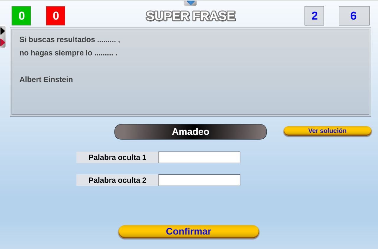 Versión de uno de los juegos del concurso de TV "Saber y Ganar" consistente en completar las palabras de una frase incompleta que se propone.