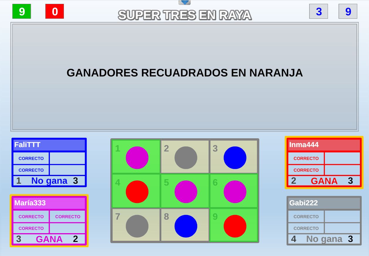 Versión del juego clásico de tres en raya, en el que pueden participar hasta cuatro jugadores cuyo objetivo es conseguir colocar tres fichas en raya de forma individual o aliándose con otro jugador.