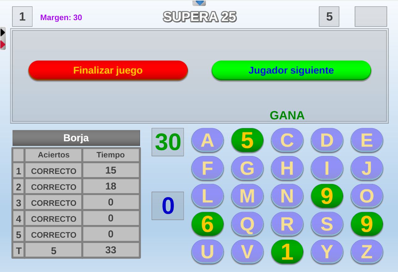 Versión de uno de los juegos del programa "El precio justo". El objetivo consiste en obtener 25 puntos o más puntos en todas las casillas seleccionadas.