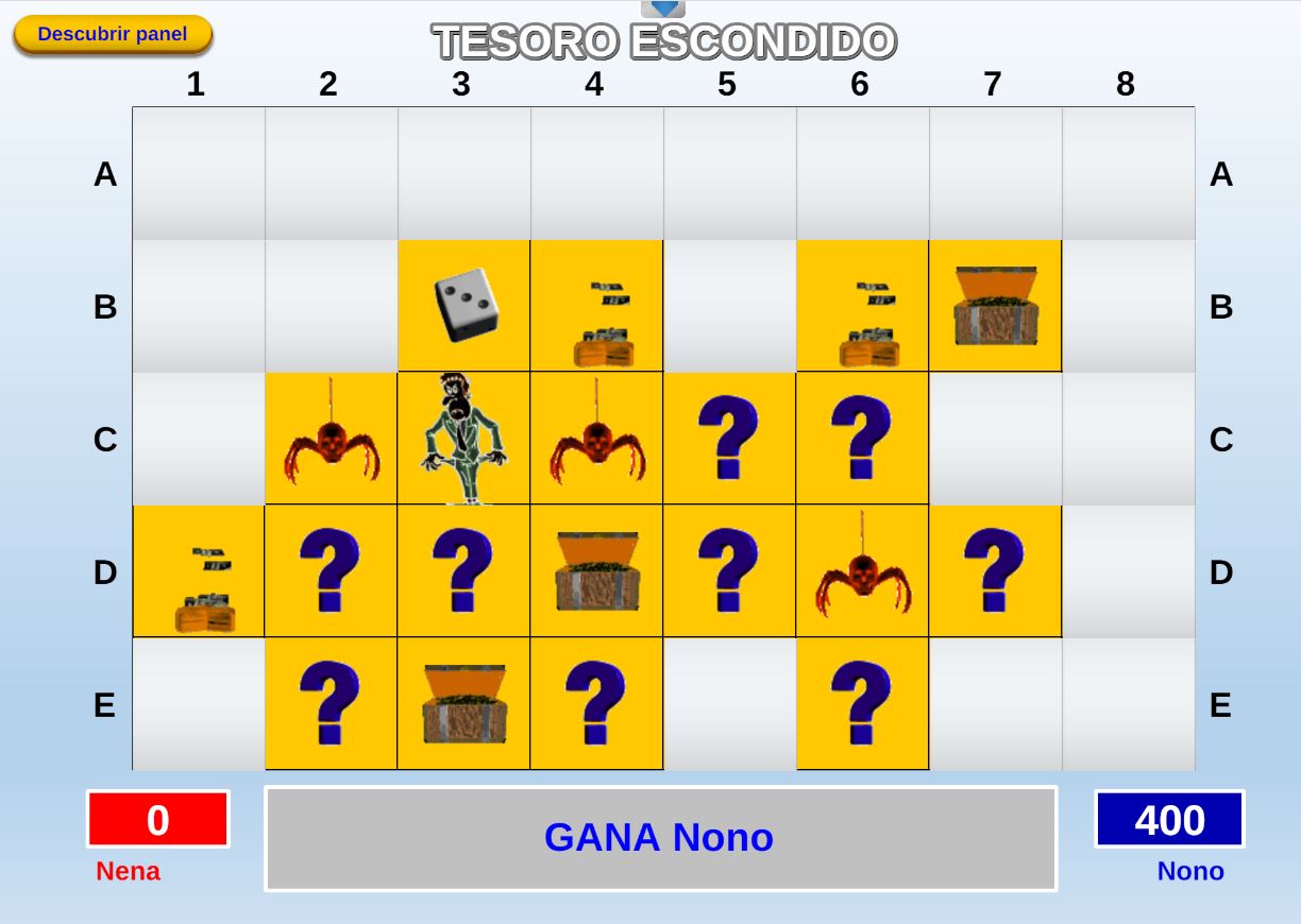 Juego que consiste en descubrir un panel con casillas cuyo contenido es sorpresa. El objetivo consiste en encontrar el diamante hasta que el otro jugador y evitar ser eliminado.