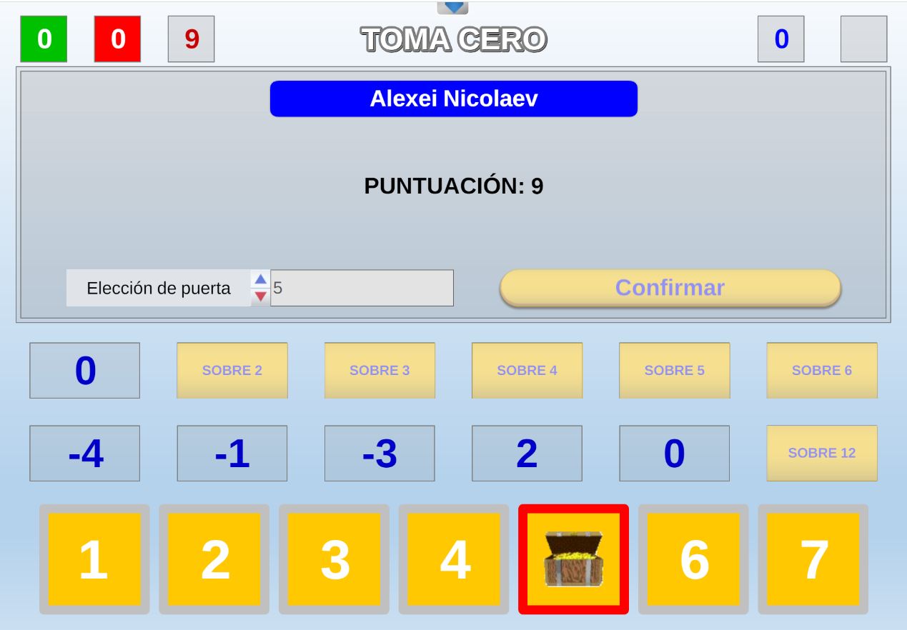 Versión del concurso de TV "Toma cero y a jugar", consistente en averiguar en cual de las siete puertas secretas se esconde el gran tesoro.