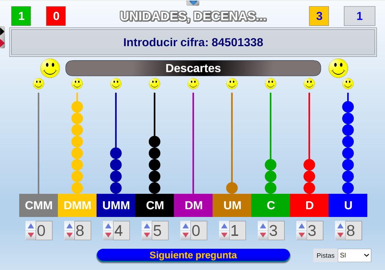 Juego preparado especialmente para las etapas de educación infantil y primaria consistente en conocer las unidades, decenas, centenas... de las cifras.