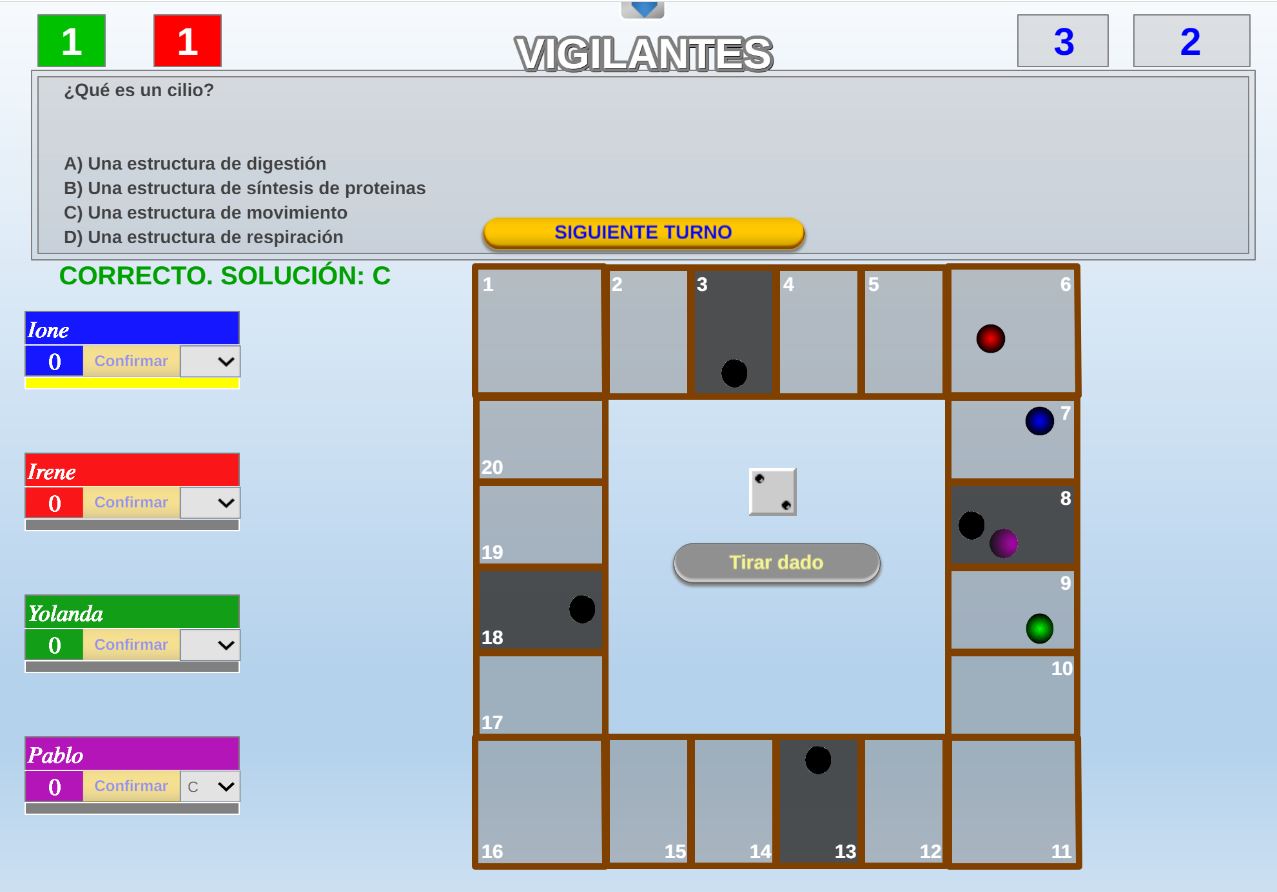 Juego en el que los participantes deberán dar un número de vueltas determinadas a un tablero antes que el resto de jugadores, debiendo evitar ser atrapados por los vigilantes.