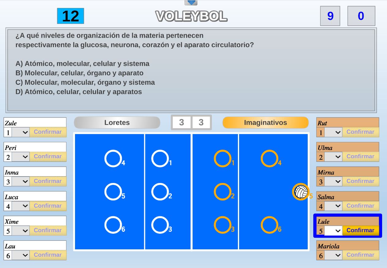Juego en el que dos equipos disputan un partido de voleibol a un set con la puntuación que se decida inicialmente. Hay dos equipos formados por seis participantes cada uno de ellos.
