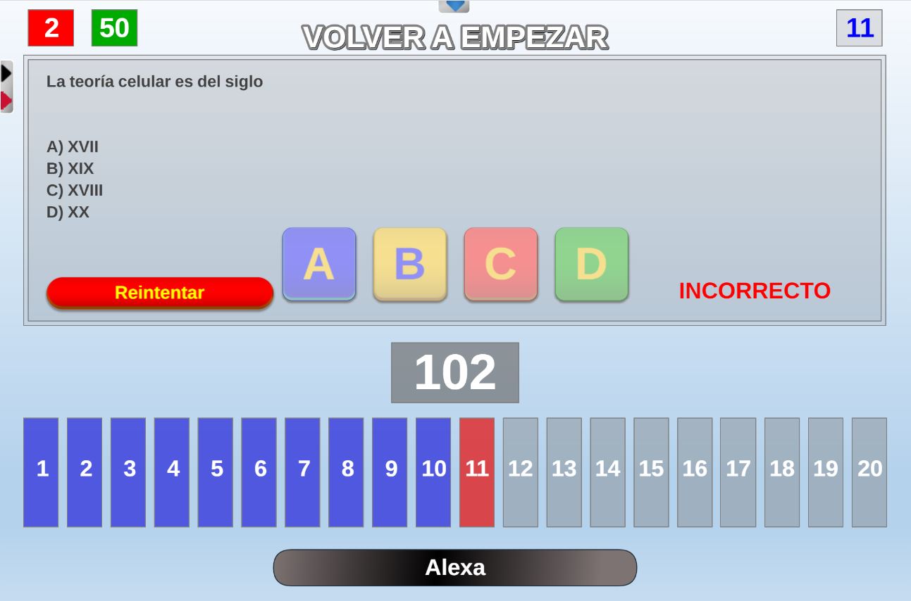 Juego en el que los participantes deberán acertar un total 20 preguntas consecutivas y cuando fallen en una deberán empezar de nuevo desde el principio.