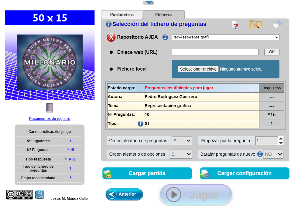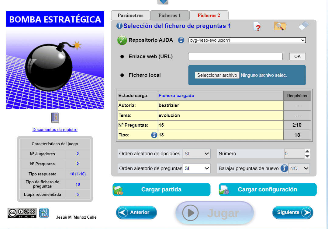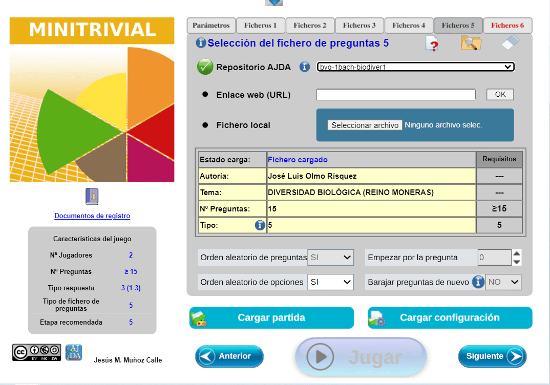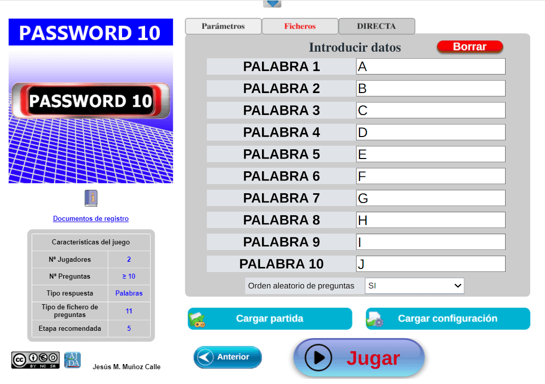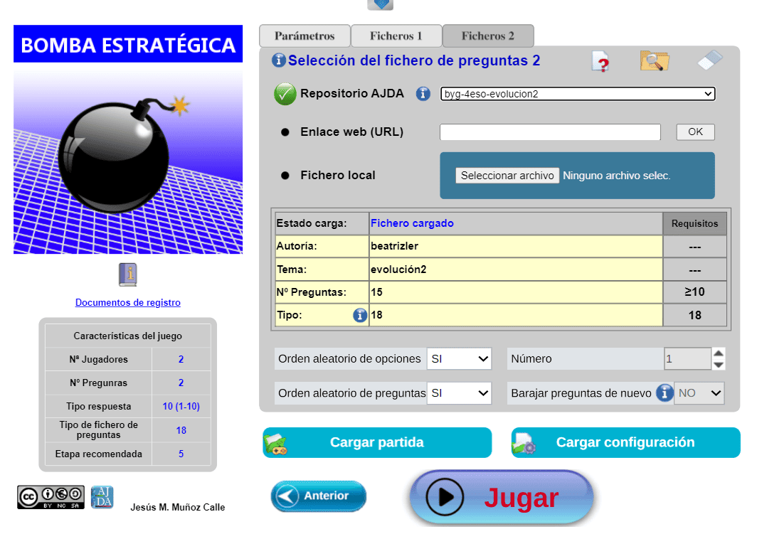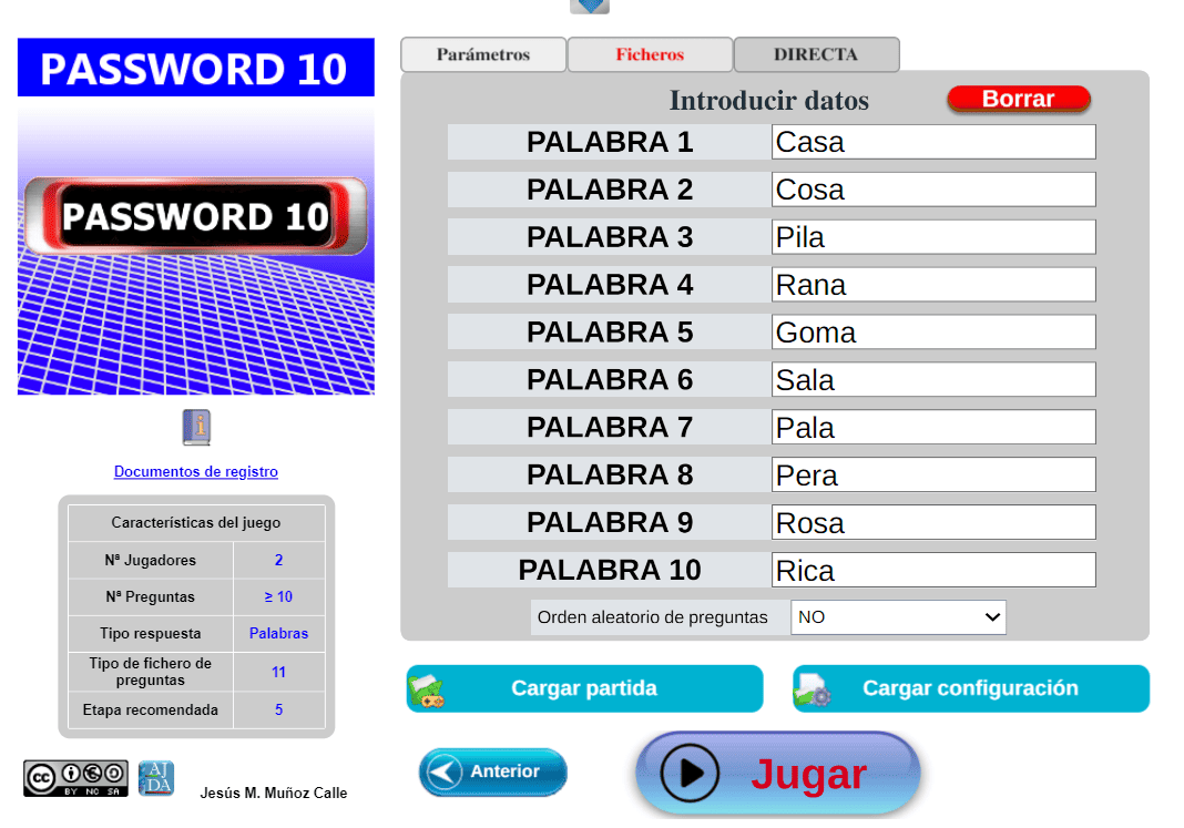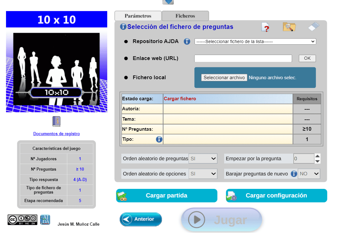 | Tipo de fichero preg. | 3 | Preguntas Manual/Juego | No/Si |