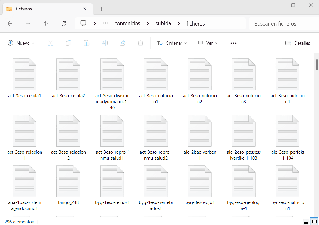 Esta opción puede ser más directa, pero se debe tener la precaución de respetar el formato de los ficheros y limitarse a introducir contenidos en los mismos, siguiendo las recomendaciones mencionadas. Esto puede ser útil para crear un nuevo fichero a partir de uno ya generado cuyas preguntas y respuestas sean parecidas.
