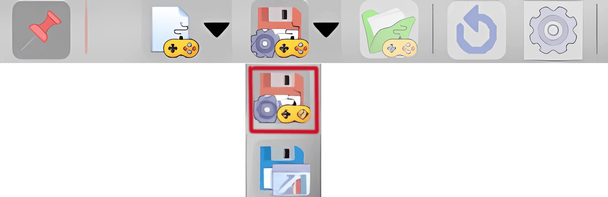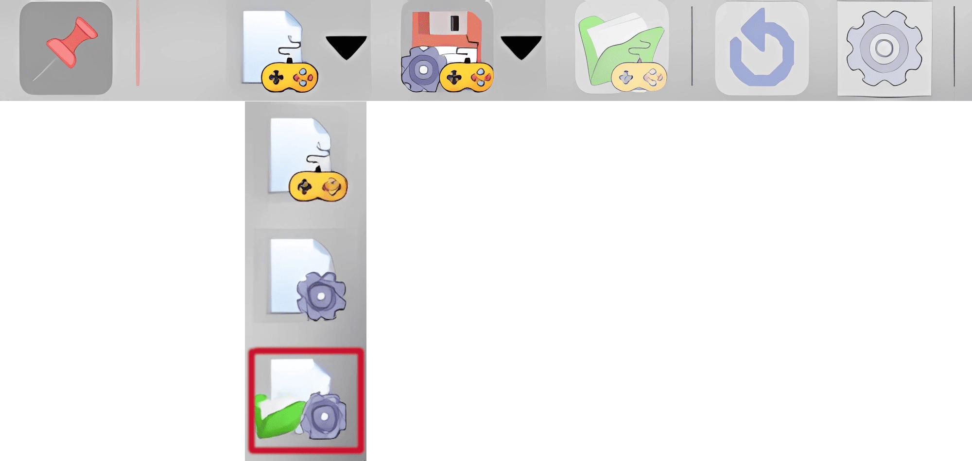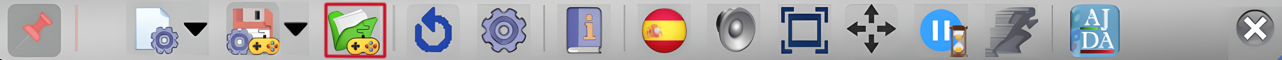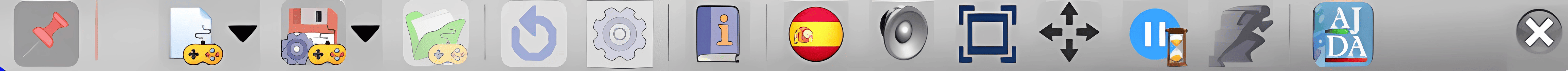 Los controles de este menú podrán estar activos o inactivos, dependiendo del momento de la partida o de las características propias del juego. Esto implica que puede que un control esté inactivo en unos momentos de la partida y en otros no. También puede ocurrir que por la naturaleza del juego un control determinado siempre esté inactivo al no poder utilizarse en el mismo. Comentaremos cada uno de los controles de este menú superior desplegable.