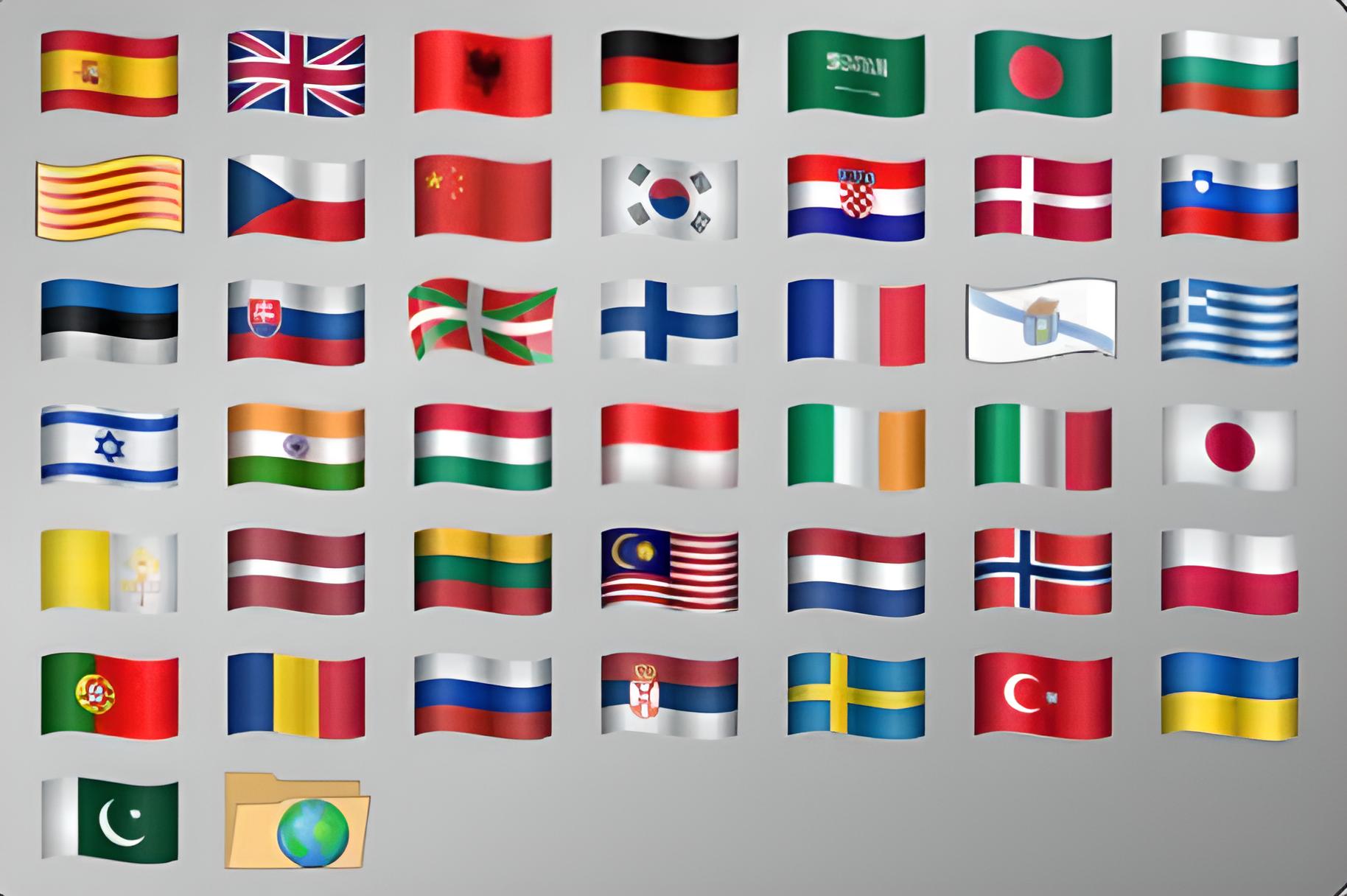 Selección de idioma de la interfaz. Abre el submenú de selección de idioma de la interfaz del juego. Pulsando en la bandera se cambia de inmediato el idioma de la interfaz.