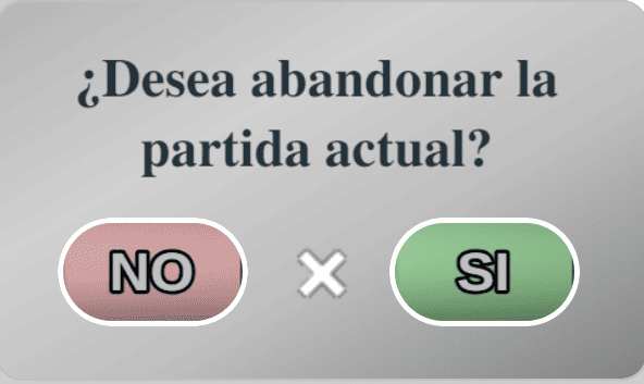 Cerrar juego. Cierra la pestaña del navegador en la que se encuentra el juego. En este caso y ante cualquier acción que implique abandonar la partida, se pedirá confirmación de la correspondiente acción.
