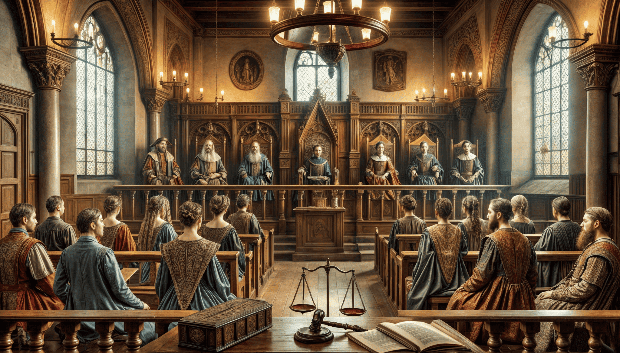 Representación de un juicio mágico. Recrear un juicio mágico en el que un personaje debe defender sus acciones o estrategias ante un jurado. La escena debe incluir todos los personajes clave, incluyendo el juez, los abogados, testigos, peritos y demás figuras relevantes, reflejando la tensión y la dinámica de un proceso judicial mágico. Los colaboradores pueden diseñar el escenario, los diálogos y los roles de cada personaje para dar vida a una representación cautivadora.