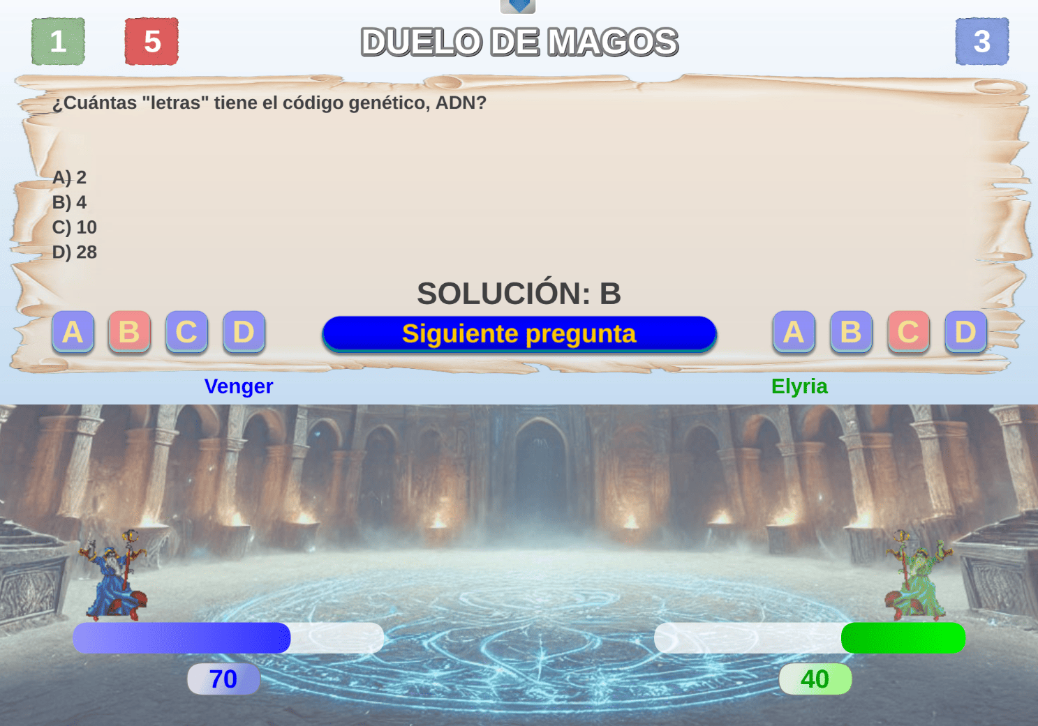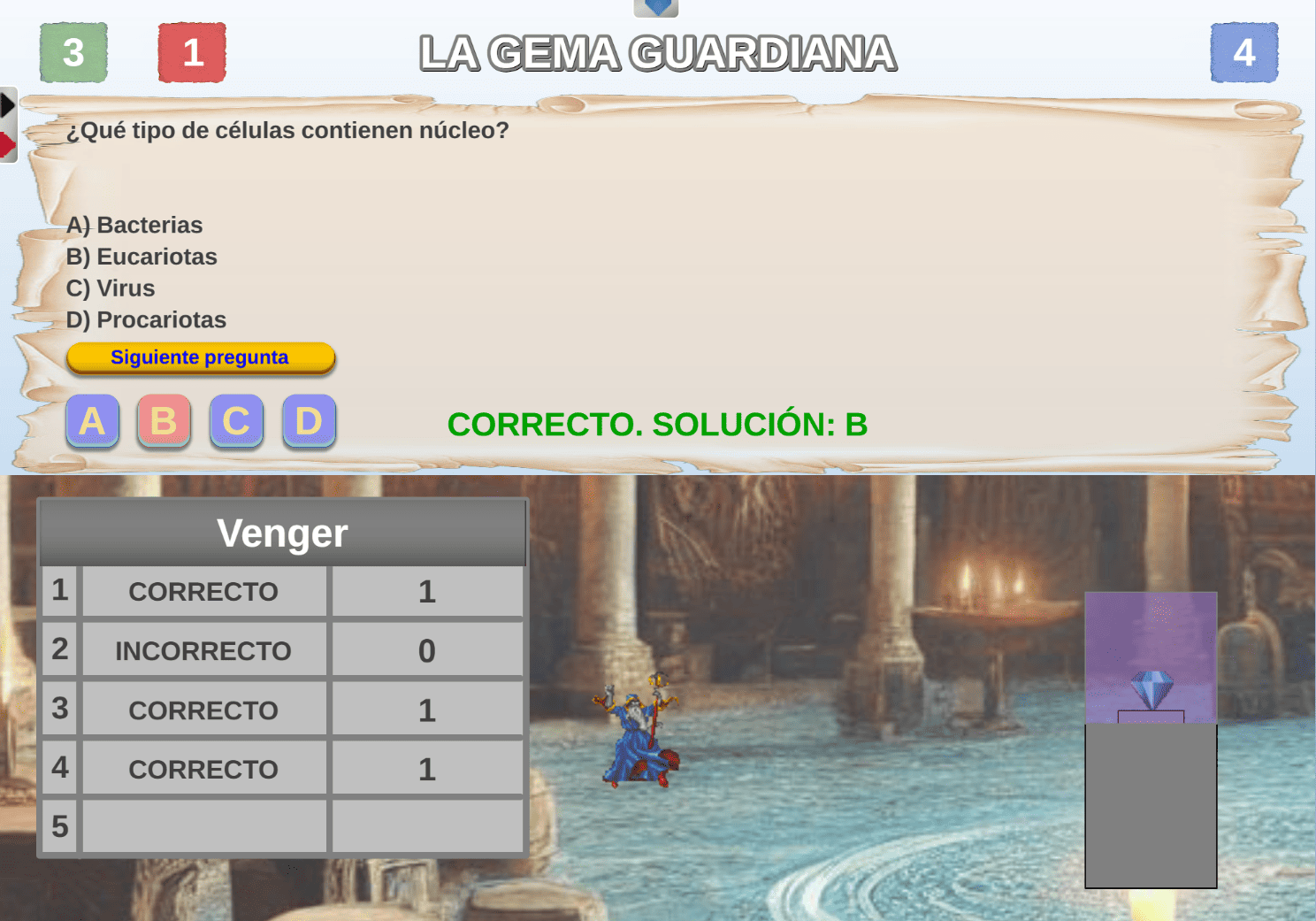 Los juegos didácticos La Gema Guardiana, Duelo de Magos y Parejas de Magos y los cuestionarios interactivos son herramientas que permiten trabajar contenidos educativos de forma dinámica y flexible. Las preguntas pueden plantearse de las siguientes maneras:
